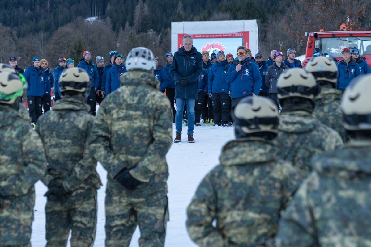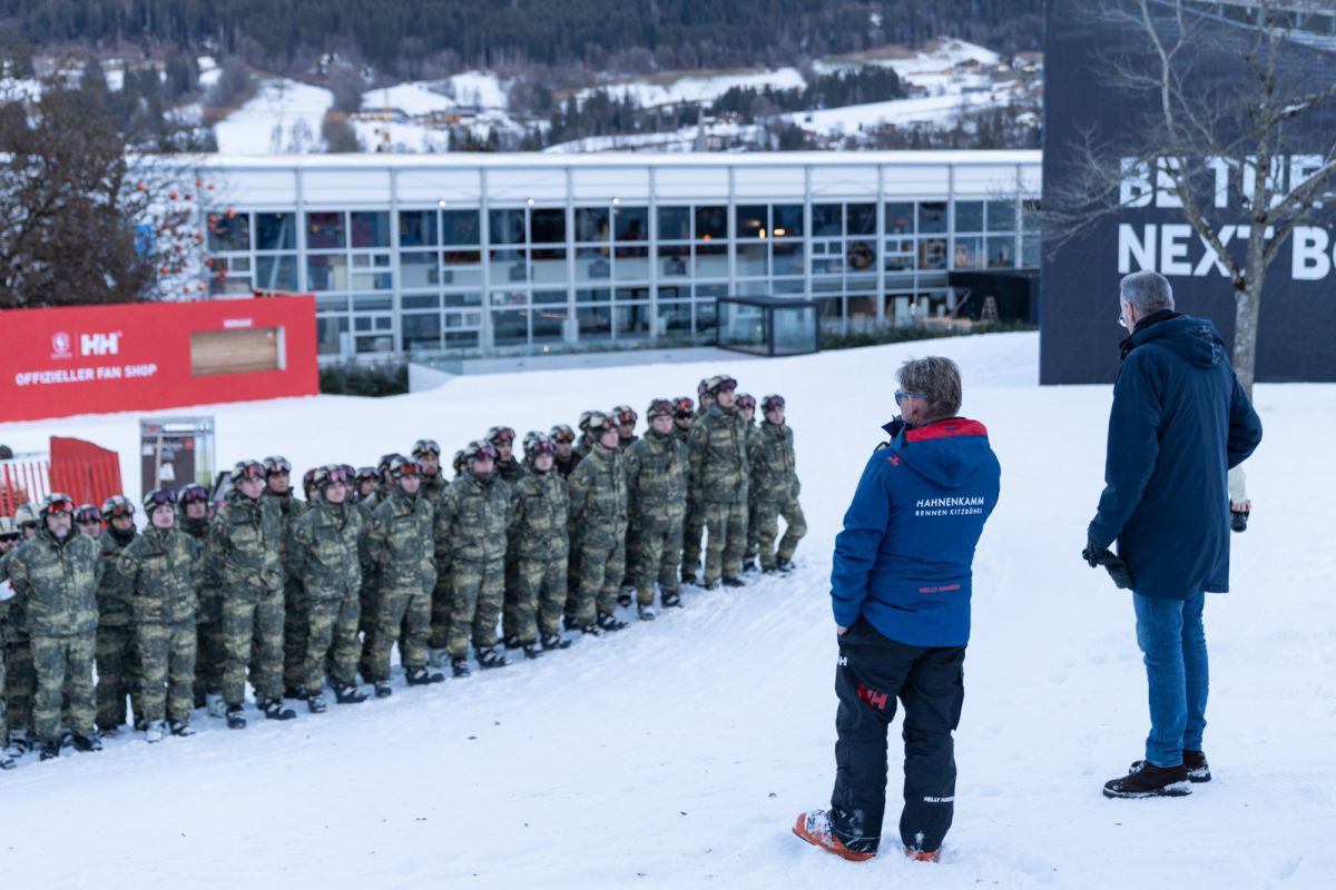 Briefings at the Hahnenkamm Races sound a little different from the usual military fare: "This is something unique. Soak up the atmosphere and enjoy it. It looks like we’re in for a week without major night operations, and I very much hope it stays that way," Chief of Race Mario Mittermayer-Weinhandl told the 94 recruits who reported for duty on Monday afternoon directly in the finish area.