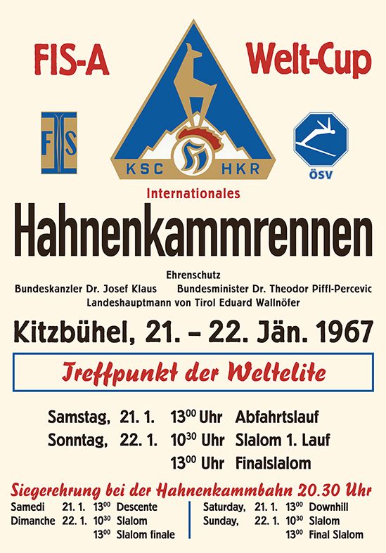 “Kitzbühel is proud to have been a permanent fixture on the World Cup calendar from the very beginning,” says Michael Huber, President of the Kitzbühel Ski Club. He adds: “According to written accounts by World Cup founder Serge Lang, Kitzbühel played a decisive role in the early success of the World Cup – in 1967, spectators in the town were greeted by a banner reading WORLD CUP IN KITZBÜHEL.”