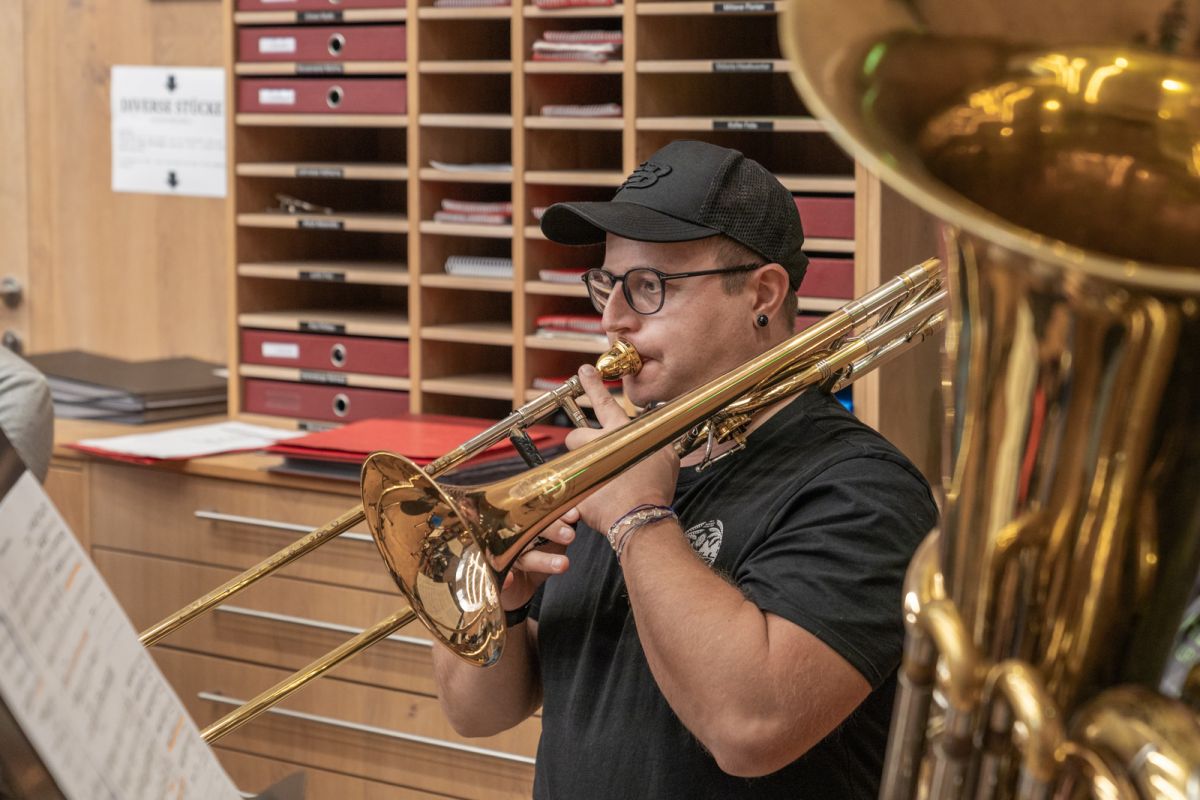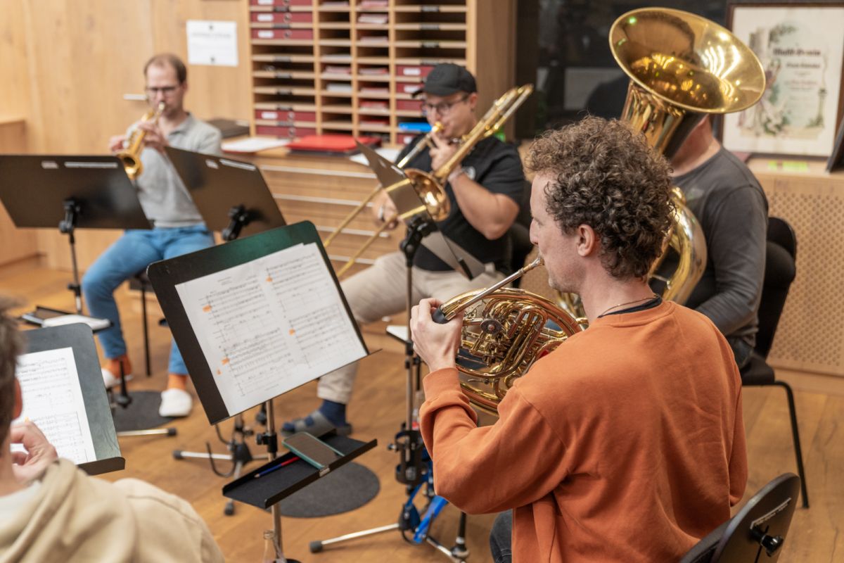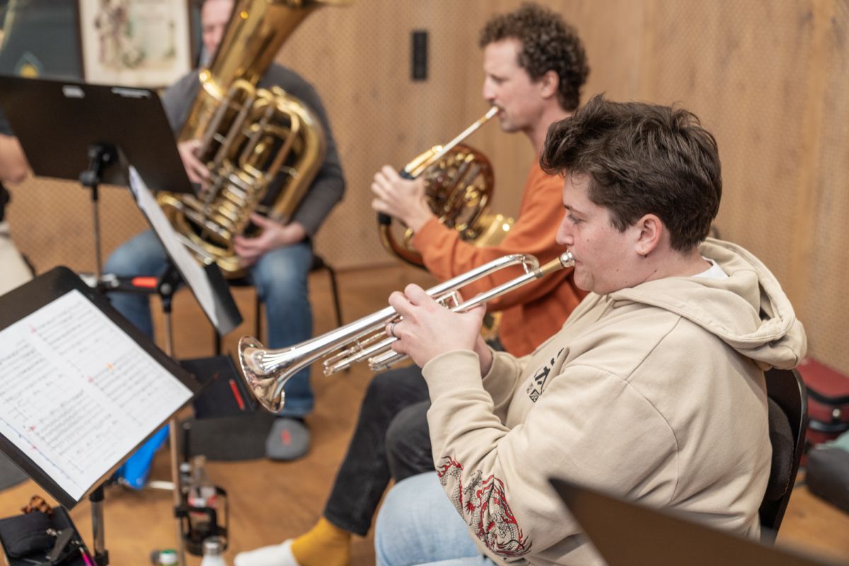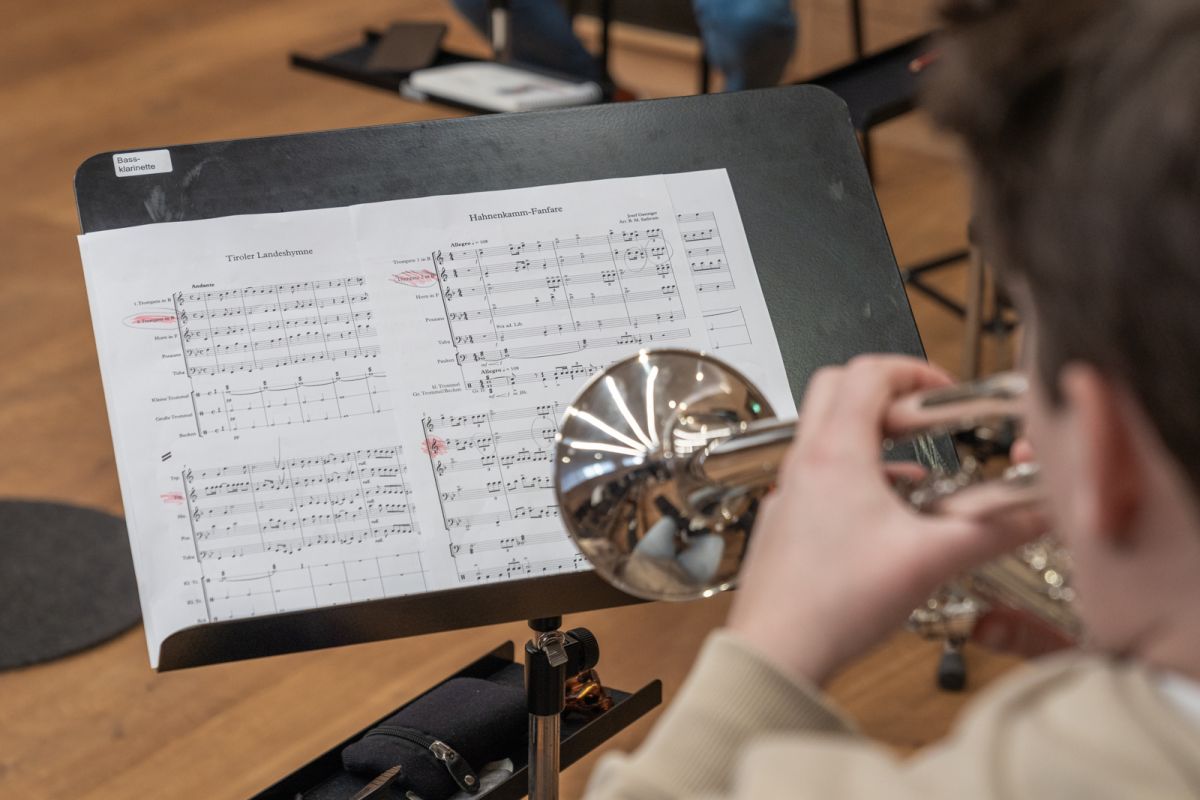 Dazu fand man sich Anfang November im Probelokal von Kitzbühels Stadtmusik ein, das erst 2019 eröffnet wurde und alle Stückerl spielt. Benjamin Sathrum, seit 2024 Kapellmeister der Stadtmusik, holte dazu „sein“ Goldbrass Quintett aus Salzburg, für die Tonaufnahme sorgte Musikproduzent Bill, der das Studio High Edge Music betreibt. Das Quintett bestand aus zwei Trompeten sowie Tuba, Horn und Posaune und – als zusätzlichen „Gast“ – einem Schlagzeug: „Denn eine Fanfare braucht ein bissl Wumms“, wie es Benjamin Sathrum umschreibt.