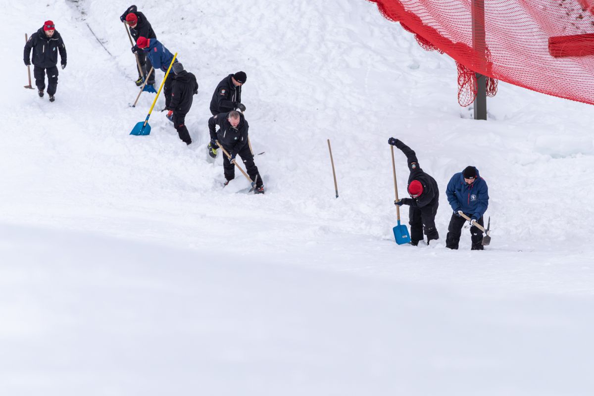 Während sich viele Wintersportler noch mitten in den Ferien befinden und die Pisten rund um den Hahnenkamm unbeschwert genießen, begannen auf der Streif mit dem Jahreswechsel die intensiven Vorbereitungen auf die beiden Speed-Rennen am 23. und 24. Jänner. Für das Team Sicherheit wurde es bei 5 Grad unter null umgehend schweißtreibend, denn es musste das Bodenseil in der Mausefalle ausgegraben werden. Im Schnee zu buddeln ist schon im flachen Gelände anstrengend, aber bei einem Gefälle von bis zu 85 Prozent wird es zur Schwerstarbeit. Das Seil wird erst freigelegt, um anschließend (mit Karabinern) die A-Netze damit zu verbinden. Gemeinsam mit Gleitplanen soll diese Absicherung den Athleten einen optimalen Schutz bieten.