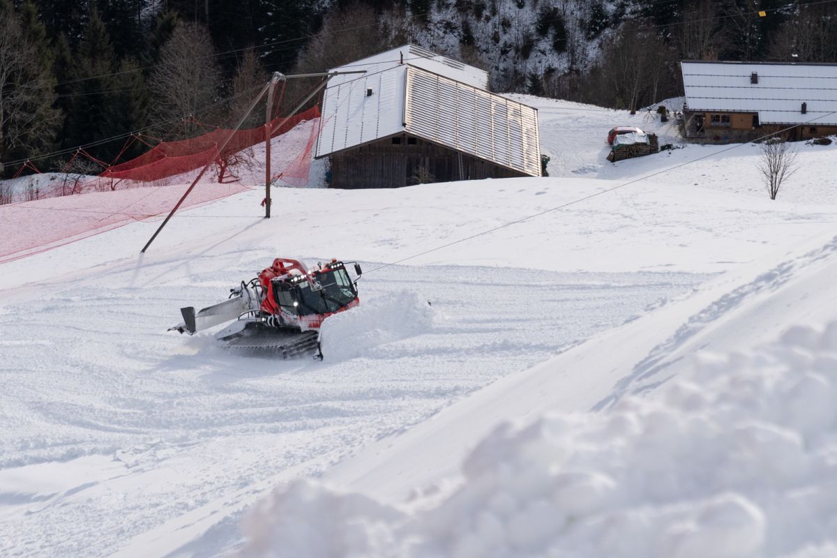 Am 2. Jänner wurde es entlang der Streif geschäftig. Die Teams Piste und Sicherheit begannen mit den Arbeiten und zwei Pistengeräte der Bergbahn Kitzbühel schoben den Schnee dorthin, wo er gebraucht wird.