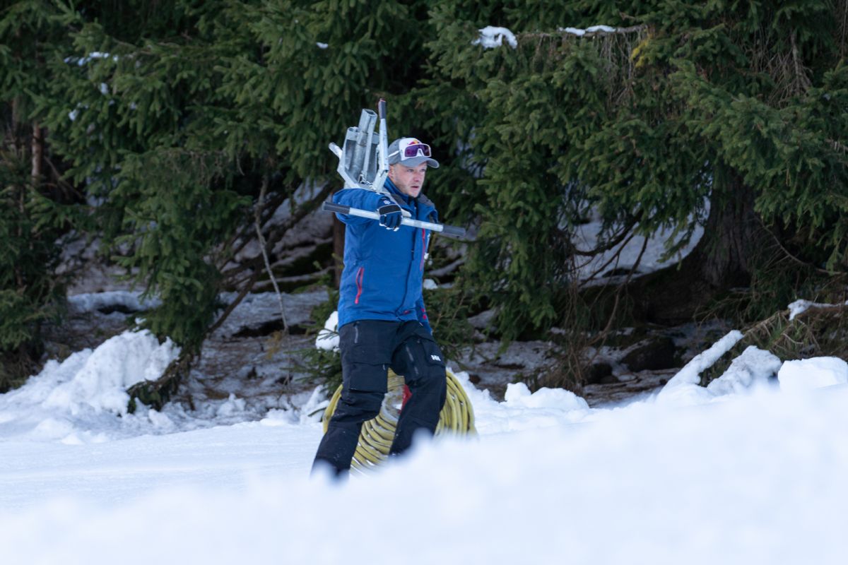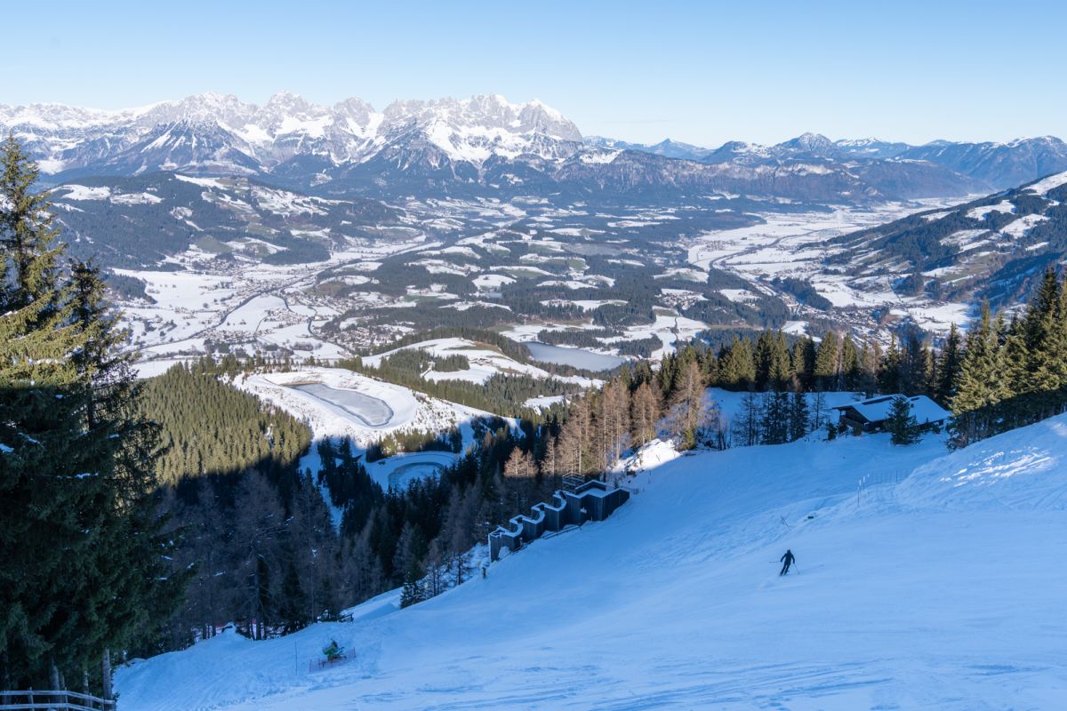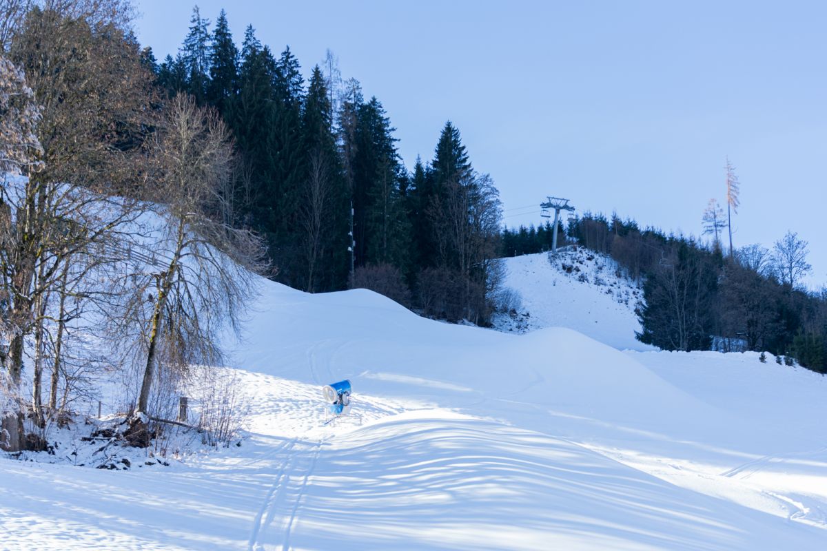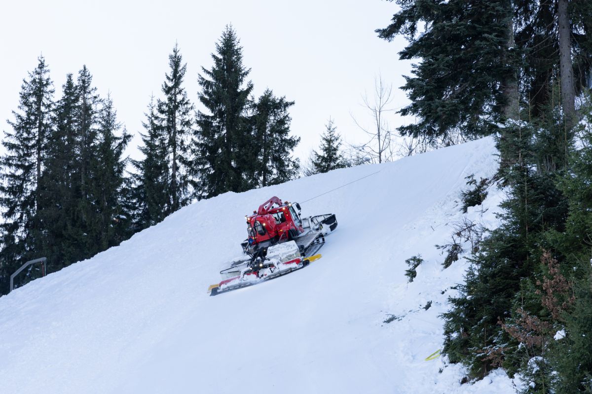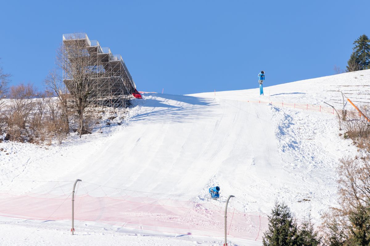 Der Schneefall und vor allem die tiefen Temperaturen im November haben die Arbeiten an den Rennstrecken Streif und Ganslern massiv erleichtert. So konnten die Mitarbeiter der Bergbahn Kitzbühel tagelang technischen Schnee produzieren. Neben der klirrenden Kälte macht sich auch die 2024 – gemeinsam mit der Bergbahn – fertig gestellte Kühlturmanlage beim Seidlalmsee bezahlt. Zusammen mit einer Erhöhung der Pumpleistung kann die Streif seit dem Vorjahr fast doppelt so schnell beschneit werden. Die Leistung der Schneekanonen muss dafür nicht erhöht werden, sie können mit kühlerem Wasser wesentlich effektiver arbeiten. Auch die Qualität des technischen Schnees ist seither besser. Auf der Streif beträgt die Schneehöhe – dank der kühlen Nächte – bereits rund 80 Zentimeter und wenn das Wetter in den nächsten Wochen mitspielt, werde dieser Grundstock auch halten, sagen die erfahrenen Pistenmitarbeiter des OK der Hahnenkamm-Rennen.